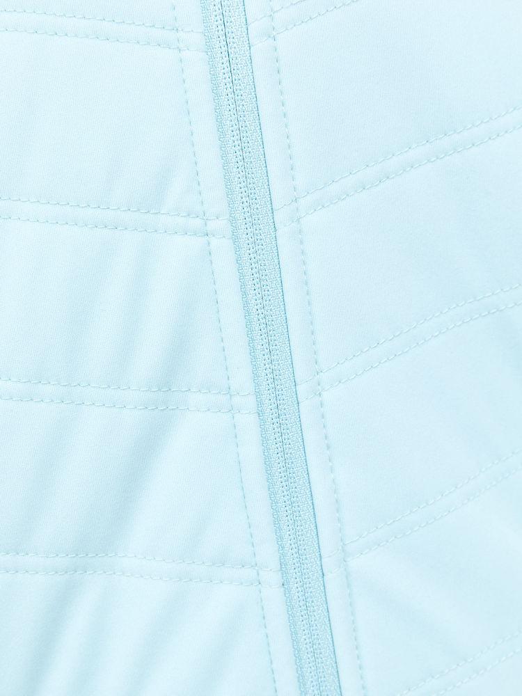 Warme, vielseitige Sportjacke mit Polsterung vorne und winddichtem Material vorne und im oberen Ärmelbereich. Daumenloch am Ärmelende und zwei Seitentaschen mit Reissverschluss.